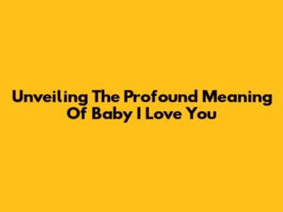Unveiling The Profound Meaning Of 'Baby I Love You'