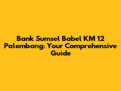 Hey guys! Are you looking for information about Bank Sumsel Babel KM 12 Palembang? You've come to the right place. This article will provide you with a comprehensive overview of the bank, its services, and everything you need to know. Let's dive in!