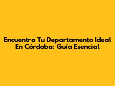 Encuentra Tu Departamento Ideal En Córdoba: Guía Esencial