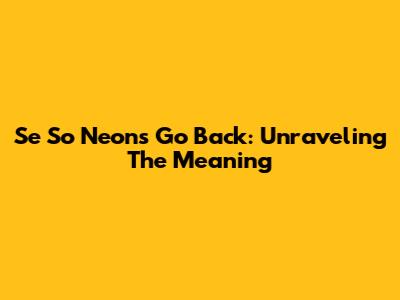 Se So Neon's 'Go Back': Unraveling The Meaning