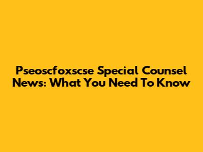 Pseoscfoxscse Special Counsel News: What You Need To Know