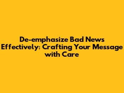 Hey everyone! Today, we're diving deep into a super important skill, especially if you're in a role where you need to communicate, well, anything really. We're talking about how to de-emphasize bad news without sounding like you're hiding something or being dishonest. It's a fine line, for sure, but mastering it can make a huge difference in how your message is received. You don't want to sugarcoat it so much that people don't get the seriousness, but you also don't want to hit them over the head with it unnecessarily, right? Let's explore some awesome strategies, looking at how sentence structure, word choice, and even context can help you deliver tough information more smoothly. We'll break down what makes certain phrasing work better than others, and by the end of this, you'll have a toolkit to handle these situations with more confidence and grace.