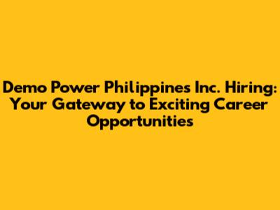 Exploring Job Opportunities at Demo Power Philippines Inc.