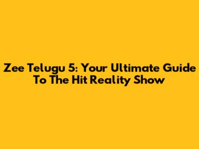 Zee Telugu 5: Your Ultimate Guide To The Hit Reality Show