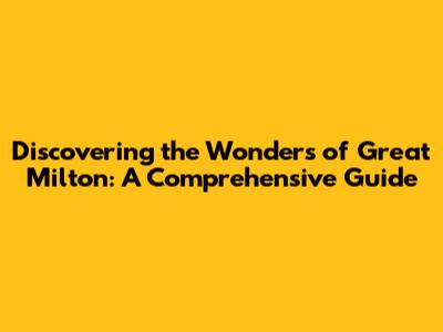 Discovering The Wonders Of Great Milton: A Comprehensive Guide