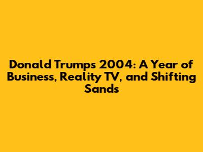 Looking back at 2004, it's clear that this year was pivotal in Donald Trump's journey. It was a year where his brand was expanding. His foray into reality TV, with The Apprentice, was not just a career move; it was a game-changer. It was the catalyst that propelled him to new heights of fame and influence. The seeds of his future political aspirations were beginning to take root. His success in business, his television stardom, and his high public profile laid the groundwork for his eventual entry into politics. The elements that would define his later career were already present: his self-promotion, his direct communication style, and his ability to capture the public's attention. His business ventures continued to thrive, with his real estate projects growing in stature and scope. His personal brand was becoming more recognizable than ever before. In essence, 2004 was a year of transformation for Trump. It marked a transition from a successful businessman to a cultural icon. It was a time when his name was associated with luxury, success, and a distinctive brand of unapologetic self-promotion. The events of 2004 provided a roadmap for his future endeavors. The lessons he learned and the strategies he employed during this year played a crucial role in shaping his path. It was a time of immense change and opportunity. His personal journey, in many ways, was a microcosm of the larger trends happening. It was the beginning of a new chapter for Donald Trump, one that would redefine his public image and shape the course of his life. This was a critical year that laid the foundation for his rise to political prominence and his impact on American society. It was a time when the world began to witness the emergence of a man who would become one of the most talked-about figures of the 21st century.