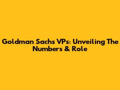 Goldman Sachs VPs: Unveiling The Numbers & Role