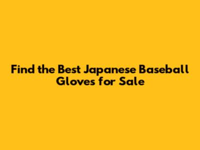 Where to Find Japanese Baseball Gloves for Sale