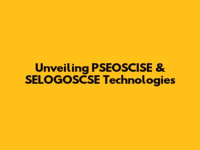 Unveiling PSEOSCISE & SELOGOSCSE Technologies