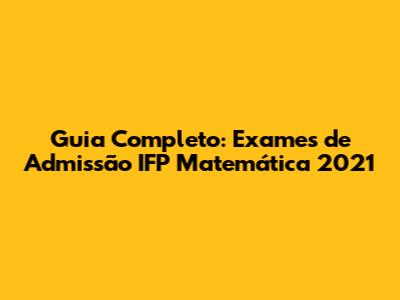 Guia Completo: Exames De Admissão IFP Matemática 2021