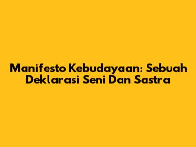 Manifesto Kebudayaan: Sebuah Deklarasi Seni Dan Sastra