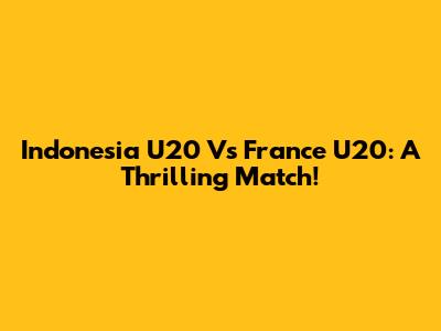 Indonesia U20 Vs France U20: A Thrilling Match!