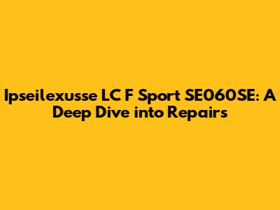 Hey guys! Ever found yourself scratching your head over the Ipseilexusse LC F Sport SE060SE? It’s a beast of a machine, and like any complex piece of tech, it can sometimes throw a wrench in your plans. But don't sweat it! This guide is your friendly neighborhood resource for all things related to repairing your Ipseilexusse LC F Sport SE060SE. We're going to dive deep, covering everything from common issues to detailed repair steps. Whether you're a seasoned techie or just starting out, this is your go-to guide to get your device back up and running. We'll explore the main issues and how to fix them. So, let’s get our hands dirty and make sure your device is in tip-top shape!