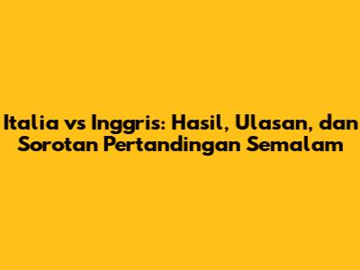Guys, mari kita bedah habis-habisan pertandingan seru antara Italia dan Inggris yang berlangsung semalam! Kita akan mengulas skor Italia vs Inggris secara detail, menganalisis jalannya pertandingan, dan memberikan sorotan terbaik dari laga tersebut. Siapkan diri kalian untuk menyelami dunia sepak bola yang penuh gairah ini!
