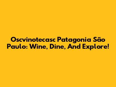 Oscvinotecasc Patagonia São Paulo: Wine, Dine, And Explore!