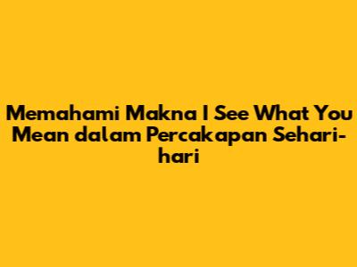 Apa Arti Sebenarnya 'I See What You Mean'?