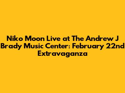 Hey guys! Get ready to mark your calendars because Niko Moon is bringing his incredible vibes to The Andrew J Brady Music Center on February 22nd! This isn't just another concert; it's a chance to experience Niko Moon's unique blend of country, pop, and R&B influences live and in person. If you're looking for a night filled with good music, positive energy, and unforgettable memories, you absolutely don't want to miss this show. Niko Moon has been making waves in the music industry with his catchy tunes and relatable lyrics, and seeing him perform live takes the experience to a whole new level. Imagine yourself surrounded by fellow music lovers, all singing along to your favorite Niko Moon hits under the vibrant lights of The Andrew J Brady Music Center. The atmosphere will be electric, the energy contagious, and the memories everlasting. So, gather your friends, grab your tickets, and prepare for an evening of pure musical magic with Niko Moon! Whether you're a long-time fan or just discovering his music, this concert is guaranteed to leave you with a smile on your face and a renewed appreciation for the power of live music. Get ready to dance, sing, and create memories that will last a lifetime!