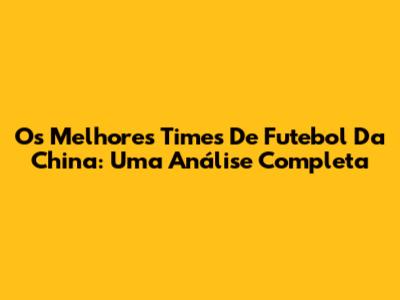 Os Melhores Times De Futebol Da China: Uma Análise Completa