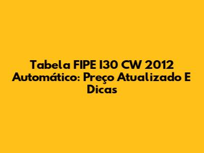 Tabela FIPE I30 CW 2012 Automático: Preço Atualizado E Dicas