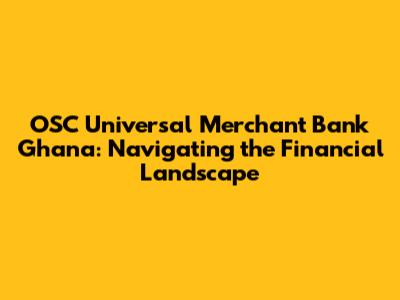 Hey guys! Let's dive into something super important: OSC Universal Merchant Bank Ghana. This isn't just any bank; it's a key player in Ghana's financial scene. I'm going to break down everything you need to know about this merchant bank, from what it offers to how it can benefit you. Get ready for a deep dive into the world of finance, Ghanaian style! Let's get started, shall we?