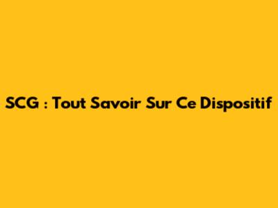 SCG : Tout Savoir Sur Ce Dispositif