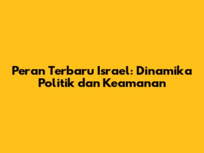 Peran Terbaru Israel: Dinamika Politik dan Keamanan