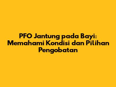 • Apakah PFO pada bayi berbahaya? Pada banyak kasus, PFO tidak berbahaya dan tidak menimbulkan masalah. Namun, pada beberapa kasus, terutama jika PFO berukuran besar atau disertai dengan kelainan jantung lainnya, PFO dapat meningkatkan risiko komplikasi, seperti stroke atau peningkatan tekanan di sisi kanan jantung.