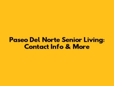 Paseo Del Norte Senior Living: Contact Info & More