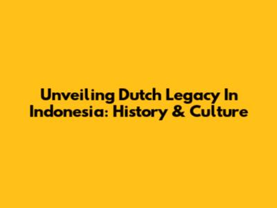 Unveiling Dutch Legacy In Indonesia: History & Culture