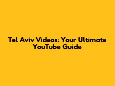 Tel Aviv Videos: Your Ultimate YouTube Guide