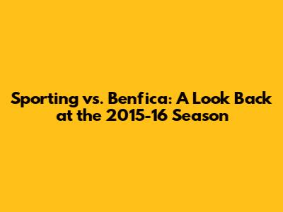Sporting Vs. Benfica: A Look Back At The 2015-16 Season