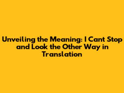 Unveiling The Meaning: 'I Can't Stop And Look The Other Way' In Translation
