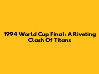 1994 World Cup Final: A Riveting Clash Of Titans