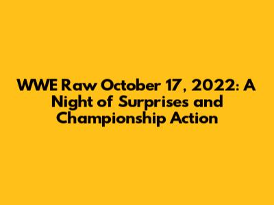 The October 17, 2022, episode of WWE Raw was a memorable night filled with intense matches, shocking moments, and significant storyline developments. From the exciting opening match to the intense main event, the show kept fans engaged. The championship battles delivered moments of drama and excitement. The results of these matches had a lasting impact on the ongoing storylines. The surprise appearances and the formation of unexpected alliances added an element of unpredictability to the show. The surprise appearances and the character introductions had a significant impact on the future of the storylines. The developments kept the audience guessing and excited.