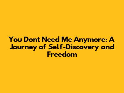 So, what's the takeaway from all of this? The phrase "You Don't Need Me Anymore" isn't a negative statement. It's a sign of growth, evolution, and the beautiful complexities of life. It’s an opportunity to embrace independence, build a life of self-reliance, navigate relationships with grace, and find meaning and purpose beyond the confines of old dependencies. It's a chance to reinvent yourself, to redefine what matters to you, and to step into a future filled with confidence and self-assurance.